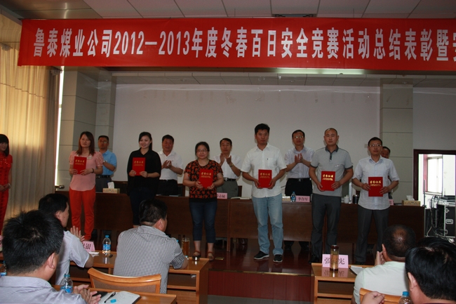 薛培华宣读了鲁泰煤业公司《关于表彰奖励"2012-2013年度冬春百日安全竞赛活动"先进集体和先进个人的通知》,并对2012-2013年度冬春百日安全竞赛活动中涌现出来的18个先进集体和64名先进个人进行了表彰。