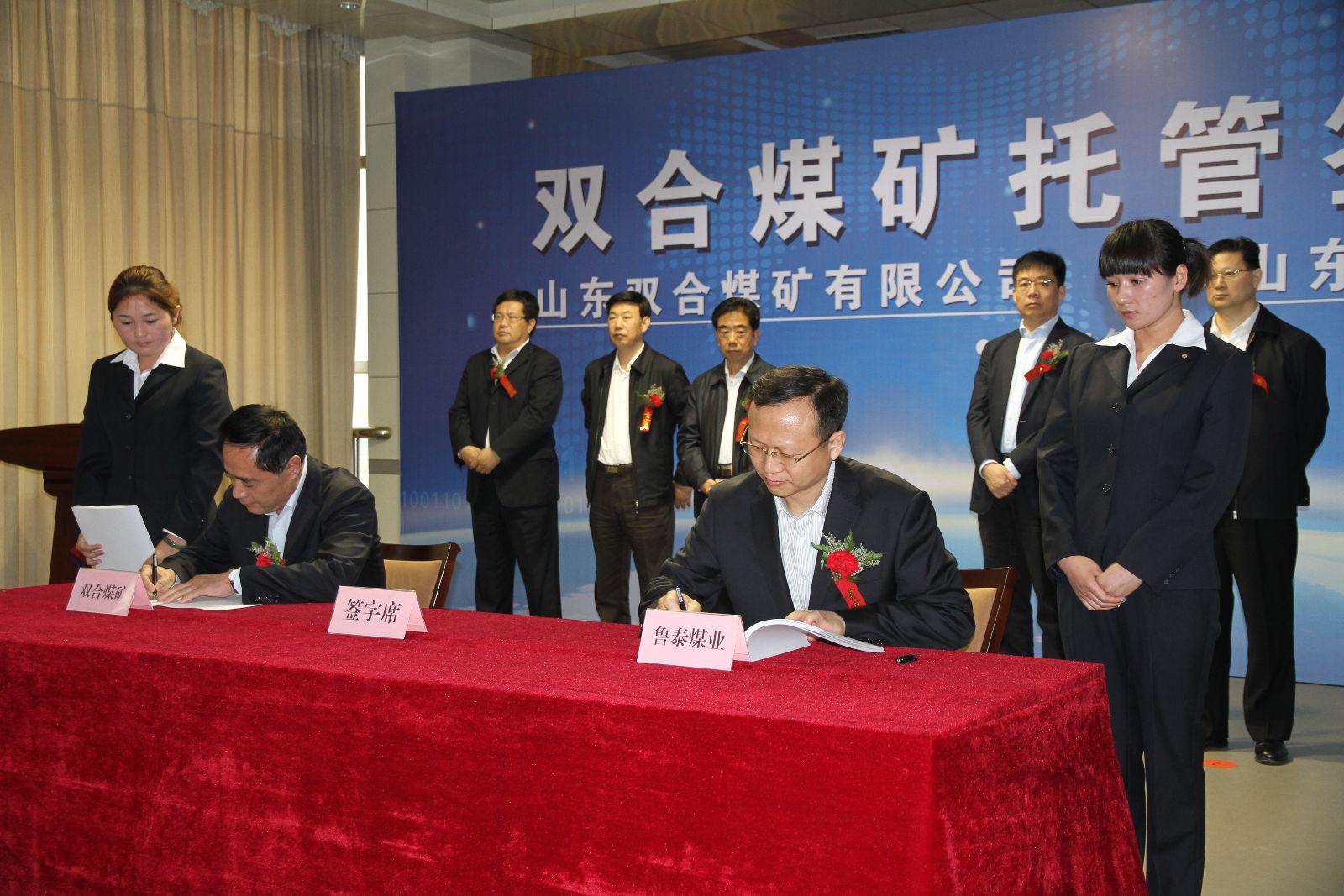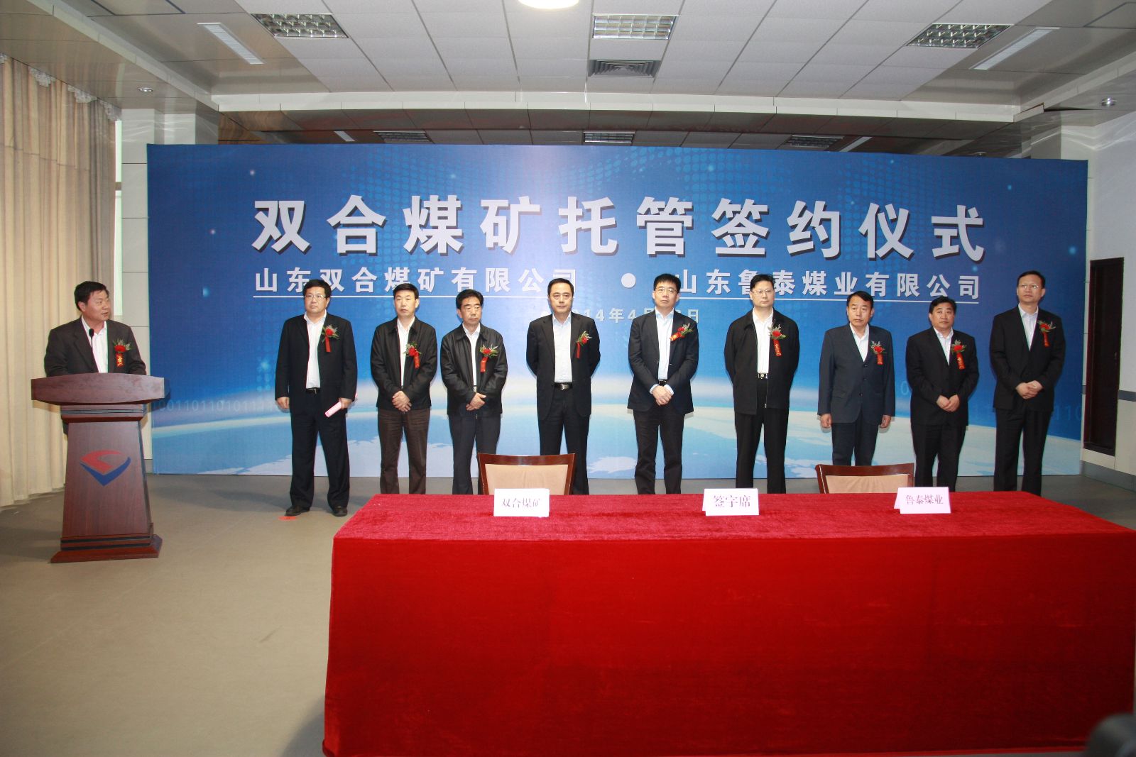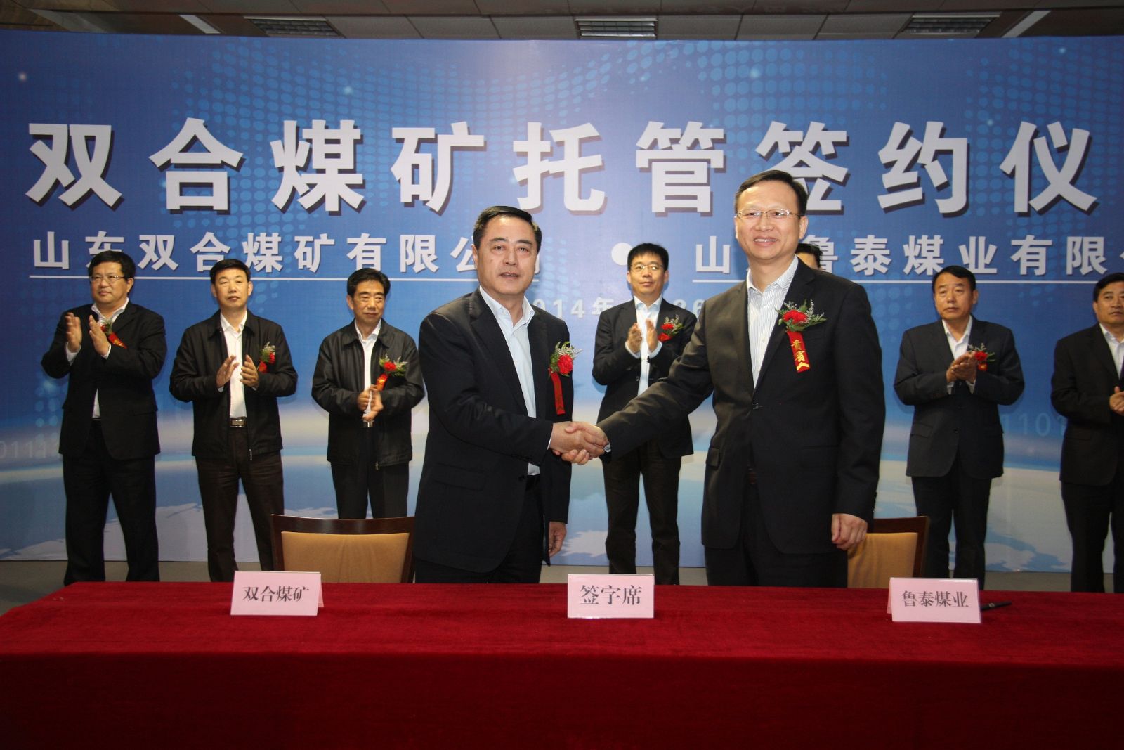 4月26日,公司与山东双合煤矿有限公司就双合煤矿托管签约仪式在公司七楼会议室举行。公司总经理李合军与山东双合煤矿有限公司董事长朱远签署委托管理合同,双方将在双合煤矿的建设生产上精诚合作、互惠共赢,共创美好明天。