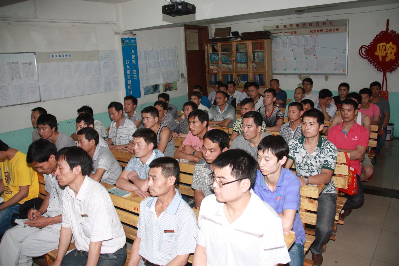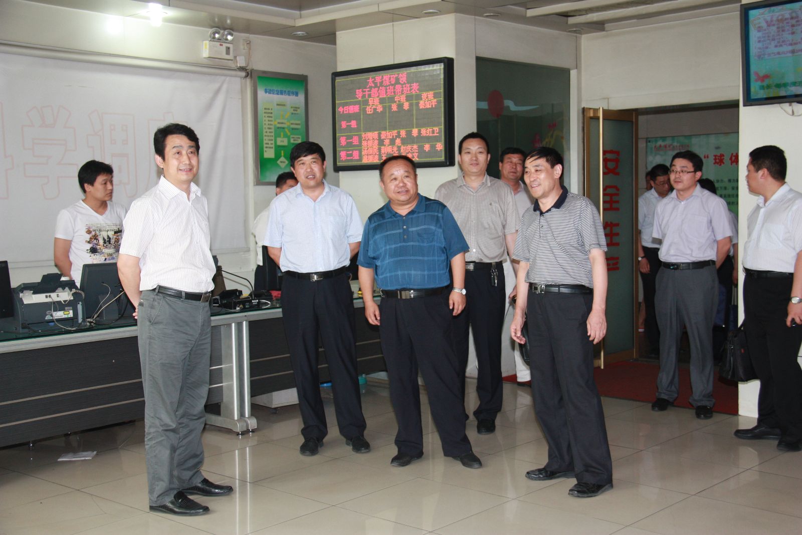 到矿后,虢洪增先来到矿调度指挥中心,查看当天安生产情况。太平煤矿矿长张玉标、党委书记汤保民汇报了今年以来安全生产和经营管理情况。在听到太平煤矿强化内部管理,成本比去年同期下降25.01%,1-5月减亏成效明显,特别是5月份实现盈利的工作汇报后,对该矿今年以来的工作给予充分肯定。随后,虢洪增来到采一工区,参加当天中班的班前会。点名后,首先对不安全人员进行了排查,采一工区区长姚俊忙对当班工作进行了安排部署,当班副区长、班长分别就相关工作进行了强调。接着,当班全体员工举行了安全宣誓,仪式结束后,班组人员奔赴井下现场,开始了紧张、有序的工作。班前会结束后,虢洪增与该工区办公室,就提高班前会质量,提出了明确要求。