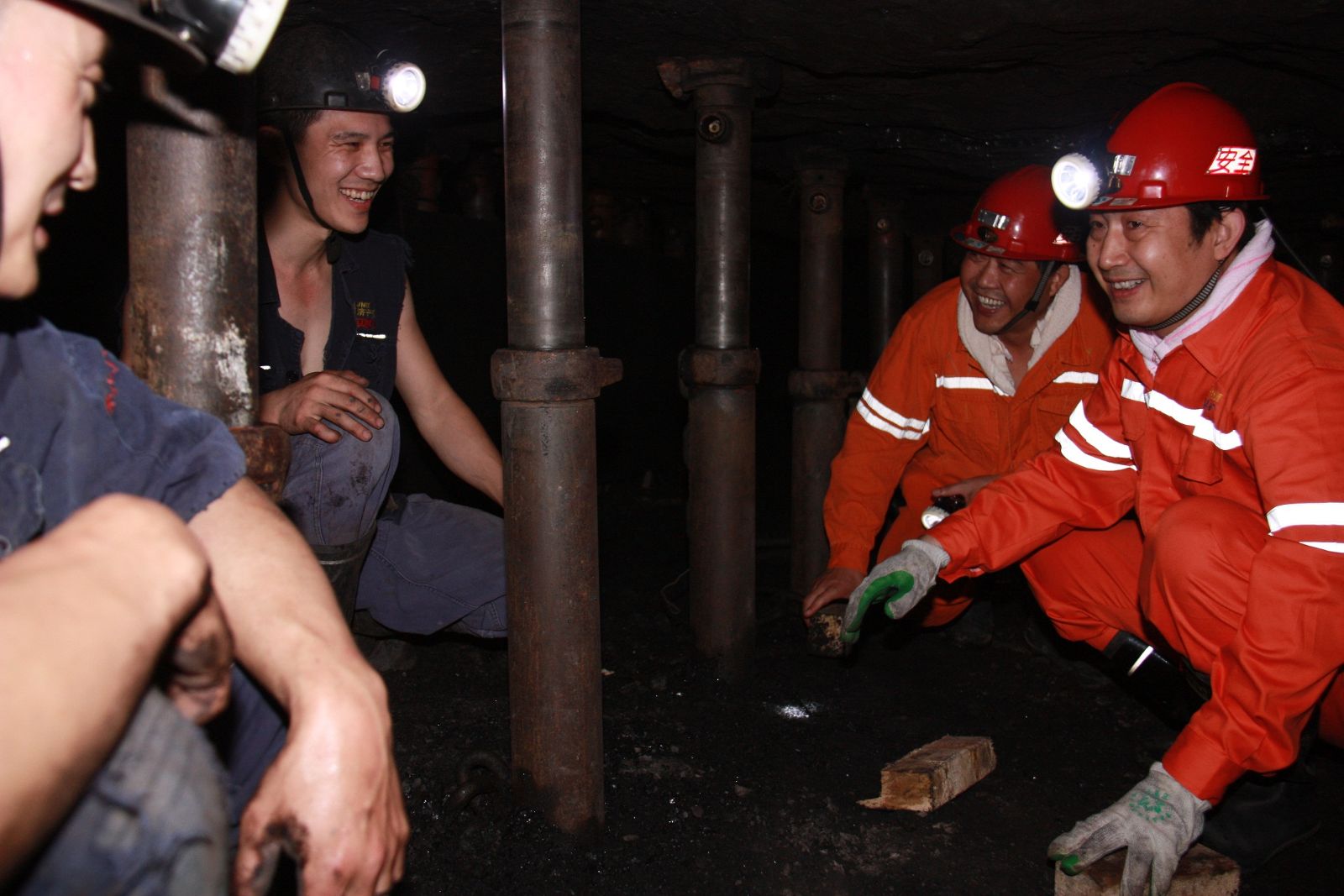 随后,虢洪增来到薄煤层9603下面,查看安全生产情况。该工作面是平均高度只有1.1米。虢洪增爬过了整个下面,并在工作面与刘正彪、王康等职工亲切交谈,询问参加工作的时间、收入等情况,勉励大家要坚定信心,在矿领导班子的带领下,爱岗敬业,积极奉献,实现安全生产。工作面和顺槽整洁干净的现场、职工饱满的精神状态,给虢洪增留下深刻印象。