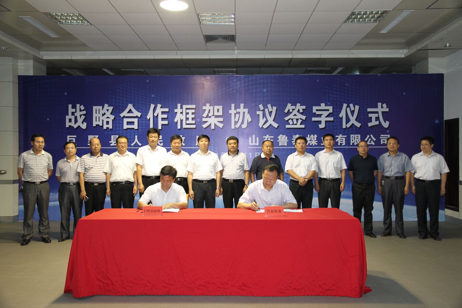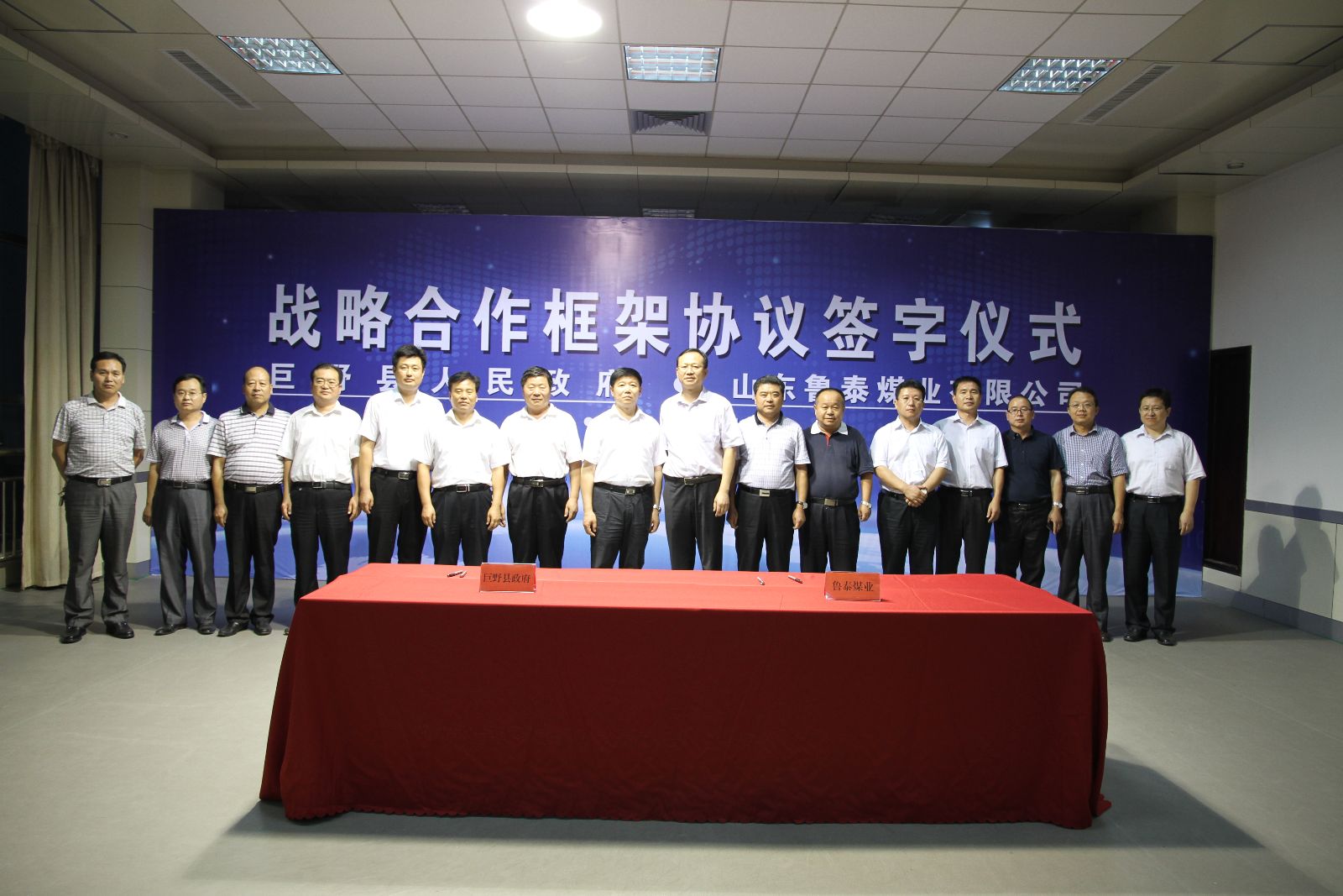 9月11日下午,鲁泰煤业公司与巨野县人民政府在公司机关七楼会议室举行了战略合作框架协议签订仪式。鲁泰煤业公司总经理李合军代表公司与巨野县人民政府签订了战略合作框架协议。