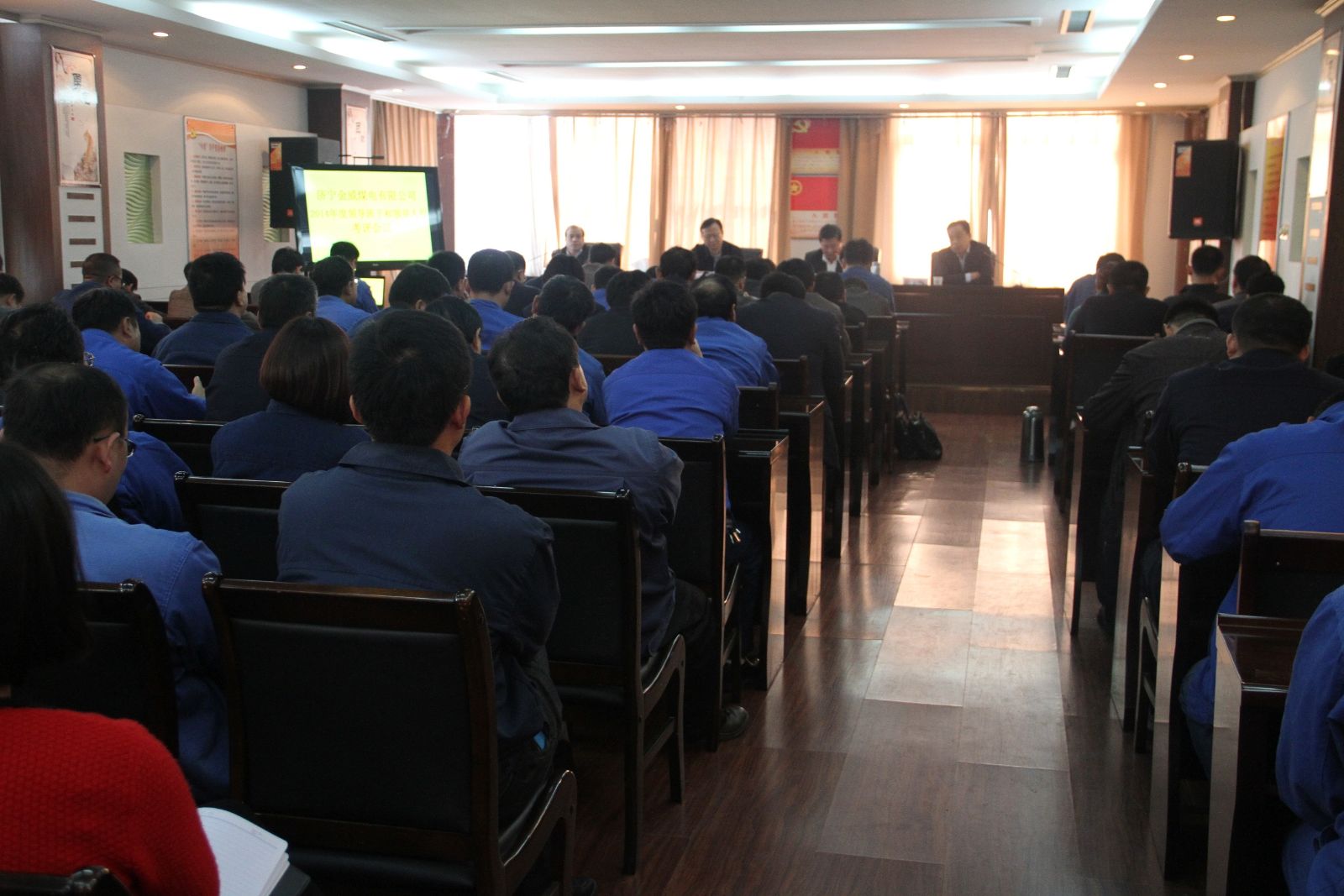根据鲁泰煤业公司党委统一部署,11月10日上午,金威煤电在四楼会议室召开了领导班子和领导人员综合考评会议。为切实做好本次民主考评工作,鲁泰煤业公司高度重视,总经理李合军,副总经理薛培华等亲自莅临监督指导。金威煤电党委书记、董事长肖作飞主持会议,领导班子成员、中层管理人员代表、职工代表80余人参加了民主考评会议。