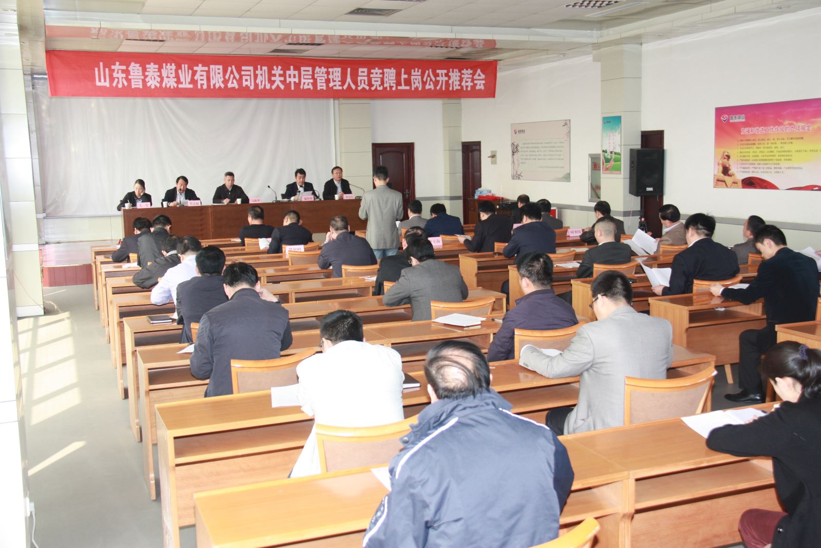 4月20日,公司下发《机关中层管理人员竞聘上岗工作实施方案》。20日,下午4:30,公司机关召开动员会,副总经理薛培华传达《竞聘方案》,公司总经理李合军作动员讲话。李合军指出,公司机关中层管理职位竞聘上岗,是贯彻落实市委、市政府和市国资委的指示要求。2013年6月,市委书记马平昌同志在到济宁能源调研时,对济矿集团机关中层管理人员全员下岗、全员竞聘上岗的做法,给予充分肯定,并要求市管米乐官网学习借鉴。市委常委、常务副市长、市国资委党委书记刘中会同志在2014年3月市管米乐官网县级国资监管机构负责人会议上,指出"要完善经营管理人才激励机制。以聘任制、任期制和经营目标责任制为主要内容,逐步对米乐官网领导人员实行契约化管理,严格任期管理和目标考核,建立能上能下、能进能出的机制。推进米乐官网领导人员选任方式与现代米乐官网制度接轨,逐步提高市场化选聘比例,通过组织选拔、公开招聘、竞争上岗等多种方式,真正把优秀人才选出来、用起来。"市国资委曹旭东主任在市管米乐官网县级国资监管机构负责人会议上,指出要"继续深化米乐官网人事制度改革。全面推行米乐官网各级管理人员聘任制、任期制,逐步加大米乐官网管理人员竞争性市场化选聘力度。"根据市委、市政府和市国资委的要求,公司对米乐官网行政主要负责人进行了竞聘上岗。这次公司对机关中层管理职位进行竞聘上岗,既是上级领导的指示要求,也是公司度危求进、应对严峻经济形势而作出的重要决策。李合军希望符合竞聘条件的人员积极报名参加竞聘。公司各米乐官网分别召开动员会,对竞聘工作进行了广泛动员。截止到4月21日报名截止时间,共有67名同志报名应聘。4月22日上午,公司召开党政联席会,对报名者进行资格审查,符合竞聘条件的有57名同志。资格审查结束后,进行了公开推荐。市国资委米乐官网领导人员管理科(党委组织部)马新华科长(部长)、毛莹等到会监督指导公开推荐。