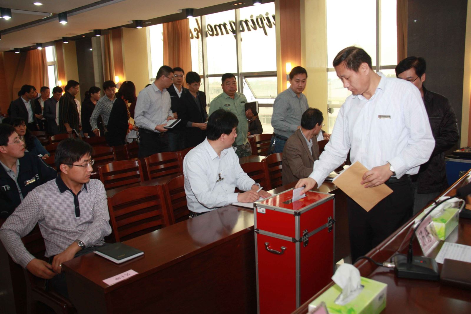5月9日上午7:30分,在矿机关楼六楼召开了中层管理人员竞聘上岗动员会。会议由党委书记汤保民主持,纪委书记兼工会主席邵作胜传达了《关于机构设置及中层管理人员竞聘上岗的实施意见》。矿长张玉标作了重要讲话,他指出,一要提高认识,充分认清竞聘上岗的重要意义。中层干部竞聘上岗,既是矿应对当前严峻形势,破解深层次矛盾的客观需要,也是健全选人用人机制,落实市国资委和鲁泰煤业公司人事制度改革要求的重要举措。二要把握原则,确保竞聘工作公开公正公平进行。要严格遵守干部任用基本原则,严格执行工作程序,严格遵守工作纪律,确保把最适合岗位要求的优秀人才选拔出来。三要积极配合,确保公开竞聘工作顺利完成。要端正态度,积极支持竞聘上岗。要服从大局,加强组织纪律性。要统筹兼顾,确保竞聘和日常工作两不误。会后,全矿原中层管理人员及全日制本科以上学历的大学毕业生等,符合竞聘条件的人员填写了自荐报名表,参加竞聘;竞聘领导小组对自荐报名人员进行了严格的资格审查后,共有138人进入公推阶段。