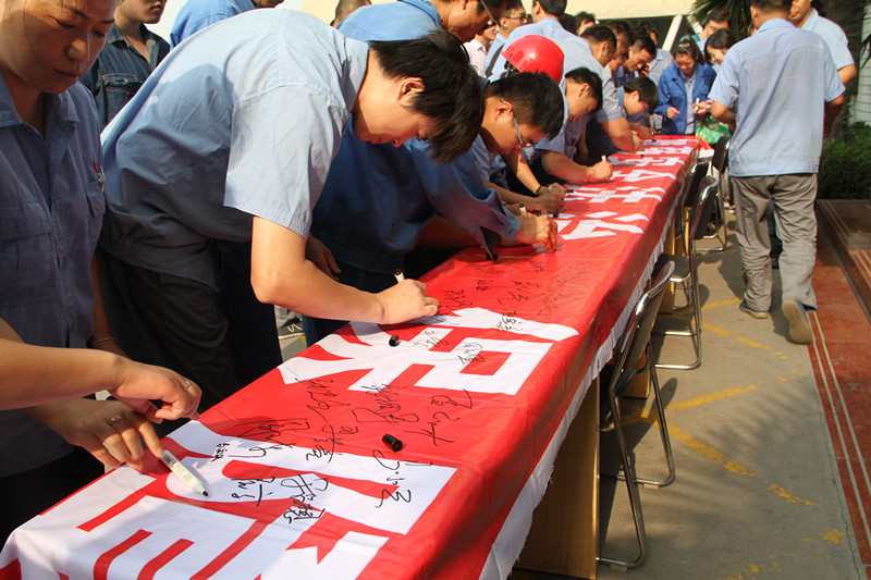 最后总经理助理时贞坤带领参会人员进行庄严安全宣誓,并集体签名。金威热电2015年安全生产月活动正式拉开帷幕。