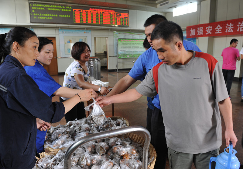 6月20日,是中国的传统佳节——端午节,鹿洼煤矿工会组织女工协管员开展端午井口送温暖活动。她们带着精心包制的600多个粽子和刚刚煮好的1200余个鸡蛋,来到井口为上、下班的职工们送上香甜的粽子和节日的祝福。