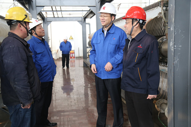 在慰问途中,李合军专程到金威化工烧碱车间,同电解工段王言朋工段长,当班员工田国宪、李衡等一线员工拜年送祝福,详细了解他们节日期间的值班、生产和在班巡检情况,鼓励他们在各自岗位上多开展小改小革,发明创造活动,进一步降低生产成本,提升公司经济效益。王言朋等在班员工接受集团公司领导祝福的同时,纷纷表示,将一定不辜负集团公司领导对的关爱,努力做好本职工工作,让集团公司领导放心。交流中,王言朋告诉集团公司领导,他们车间正在围绕集团公司"十三五"规划输卤工程项目建设工作开展讨论,组织员工进行全卤制碱工艺的学习探讨,早日做好全卤制碱工艺的对接工作,为集团公司转型发展再立新功。